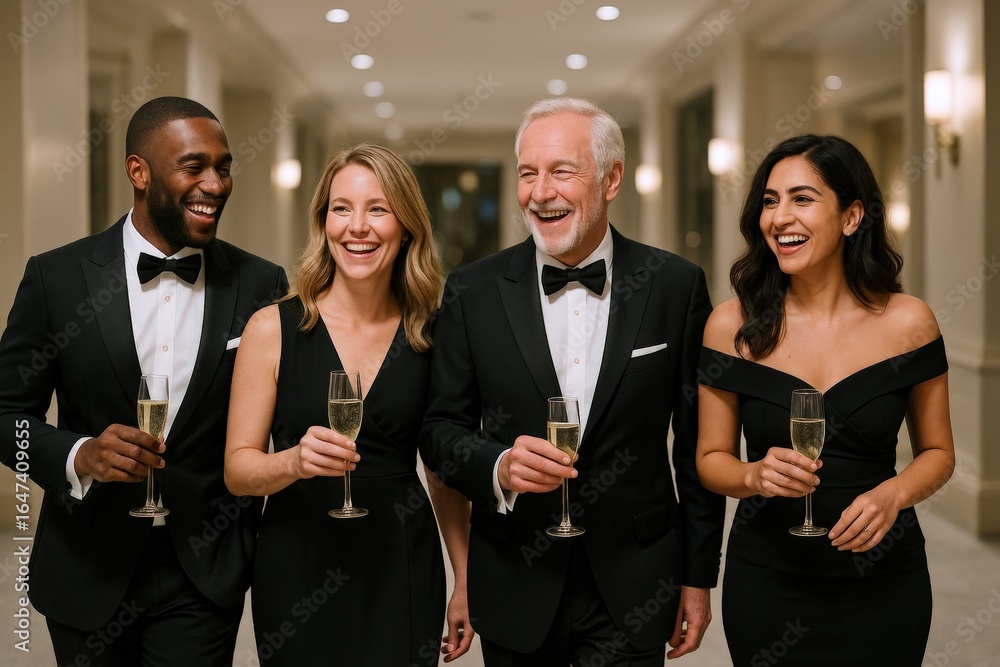 Obraz na płótnie Canvas - Diverse Group Enjoys Champagne at Formal Event: Celebrating Together in Elegant Attire.
