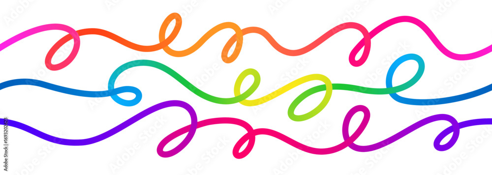 Obraz na płótnie Canvas - Swirl Color Gradient Lines. Vector Abstract Seamless Rainbow Ribbons. 3D Curve Swirl Strokes. Flowing Lines Graphic Design..