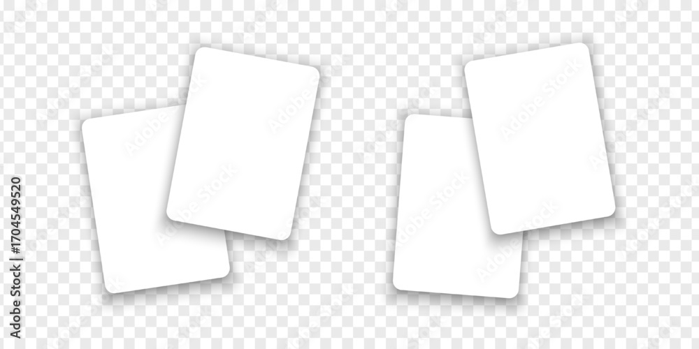 >Obrazy na płótnie Canvas>Wybrane motywy - zobacz więcej !>Woda>Two empty white playing cards isolated on transparent background. Playcard blackjack mockups in top view. Poker game concept. Voucher, giftcard or discount templates. Vector realistic illustration.