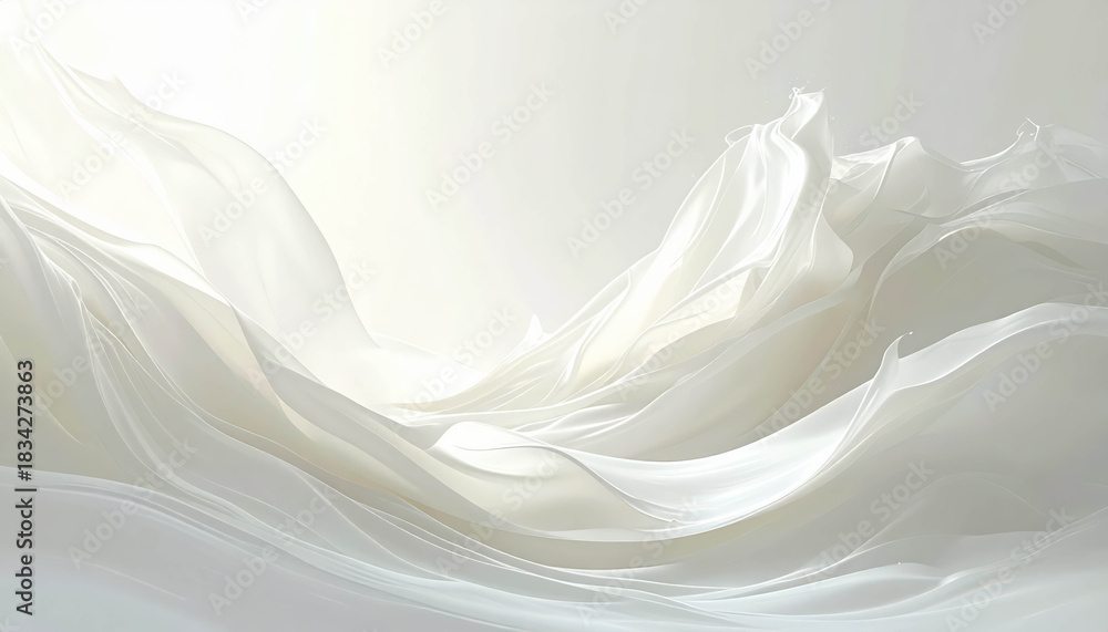 Obraz na płótnie Canvas - Ethereal white fabric waves gracefully undulating in soft light, creating a serene atmosphere, embodying the concept of cloud dancer and tranquility in motion.