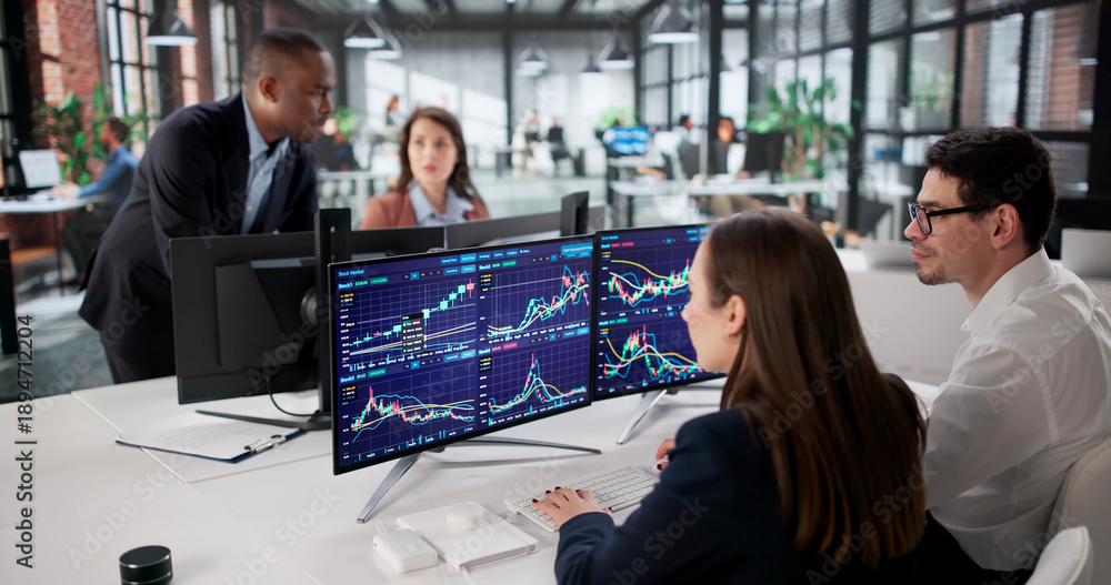 Obraz na płótnie Canvas - Diverse Group Of Stock Brokers Trading.