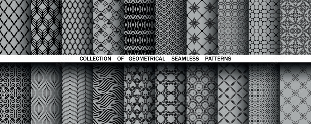 Obraz na płótnie Canvas - Geometric set of seamless black and gray patterns. Simple vector graphics.