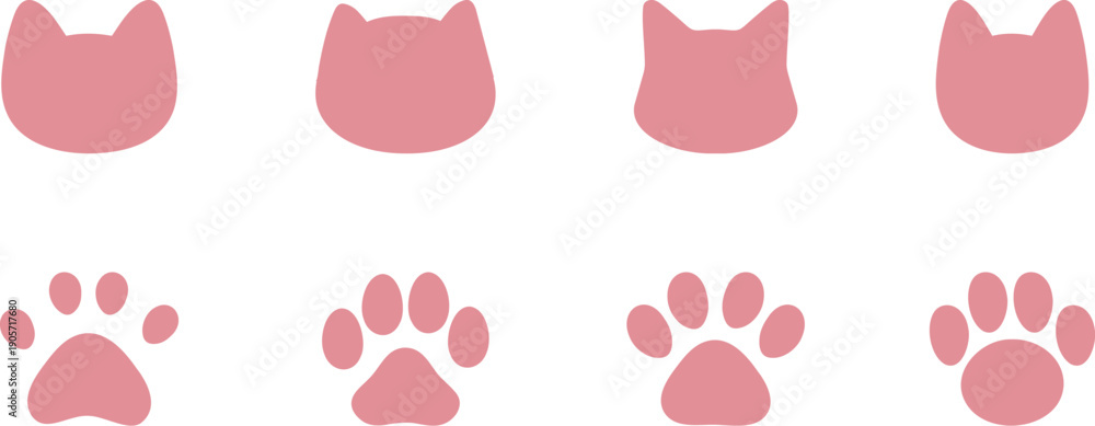 Obraz na płótnie Canvas - かわいい肉球のイラストセット 犬 猫 Dog and cat paw print..
