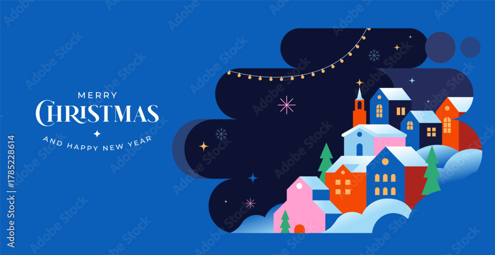 Obraz na płótnie Canvas - Winter town colorful geometric Christmas background..
