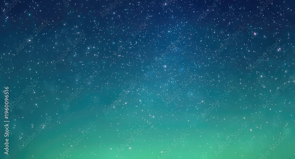 Obraz na płótnie Canvas - Light blue green themed 2D cartoon starry sky suitable for futuristic booklet covers.