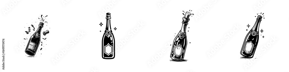 Obraz na płótnie Canvas - Celebrating moments with champagne bottle illustrations showcasing the joy of toasting and festivities.