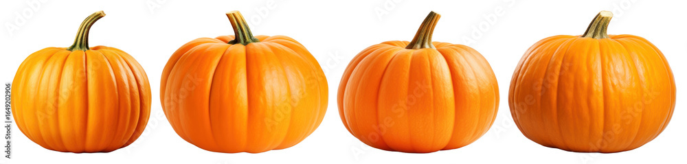 Obraz na płótnie Canvas - PNG Four vibrant orange pumpkins aligned, element set on transparent background.