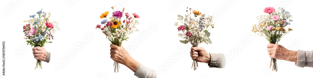 Obraz na płótnie Canvas - Elderly Hands Holding Bouquets of Flowers: Gesture of Love.