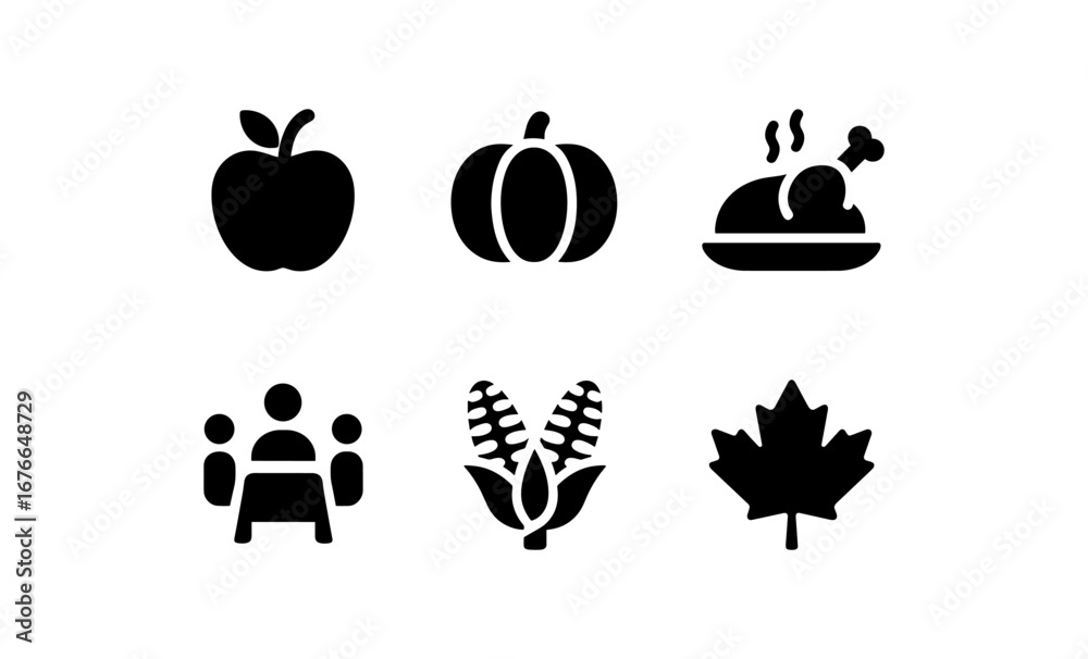Obraz na płótnie Canvas - Silhouette icons of harvest foods and autumn symbols.