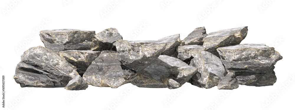 Obraz na płótnie Canvas - Nature hard grey rocks pile landscaping on transparent backgrounds 3d rendering png.