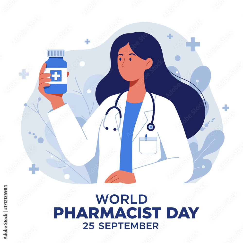Obraz na płótnie Canvas - Square banner celebrating world pharmacist day, 25 september, vector illustration design.