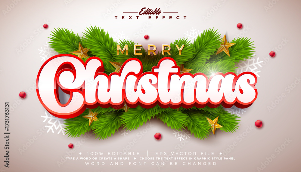>Obrazy na płótnie Canvas>Wybrane motywy - zobacz więcej !>Zebra>Merry Christmas Editable Text Effect Design Vector Graphic Style with Red 3D Typography Lettering and Ornaments on White Background. Winter Holiday Scalable Illustration Template for Greeting Card