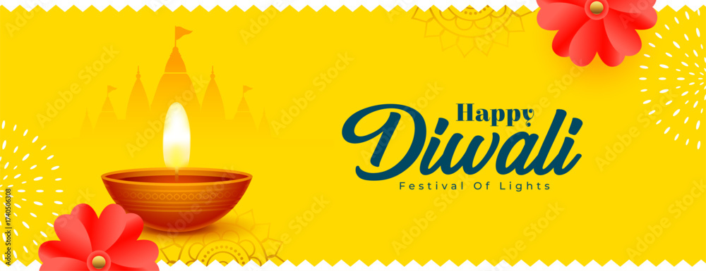Obraz na płótnie Canvas - happy diwali festival of lights yellow banner.