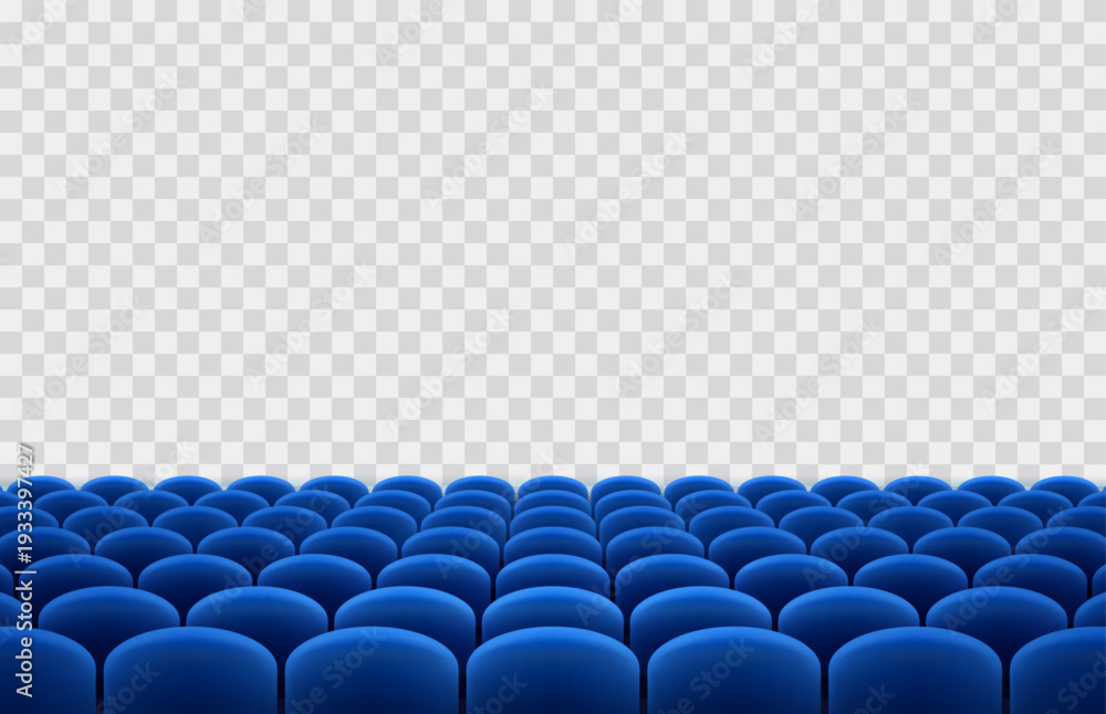 Obraz na płótnie Canvas - Cinema or movie seats isolated on transparent background. Vector rows of realistic blue theater chairs. Empty hall with armchairs template.