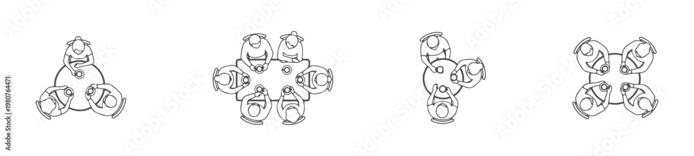 Obraz na płótnie Canvas - Top View People Sitting at Tables Vector Set, Overhead Perspective Minimalist Dining Figures with White Fill for Architectural Site Plans, Interior Design, Clean Line Art Style.
