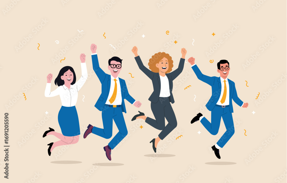 Obraz na płótnie Canvas - Happy business character people office team. Cartoon happy business person jump flat employee success joy illustration..