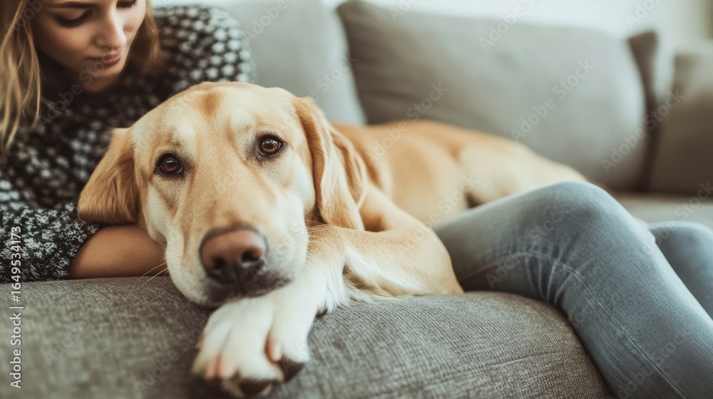 Obraz na płótnie Canvas - Pet owners diligently cleaning their dog s paws on the sofa for optimal hygiene and care at home..