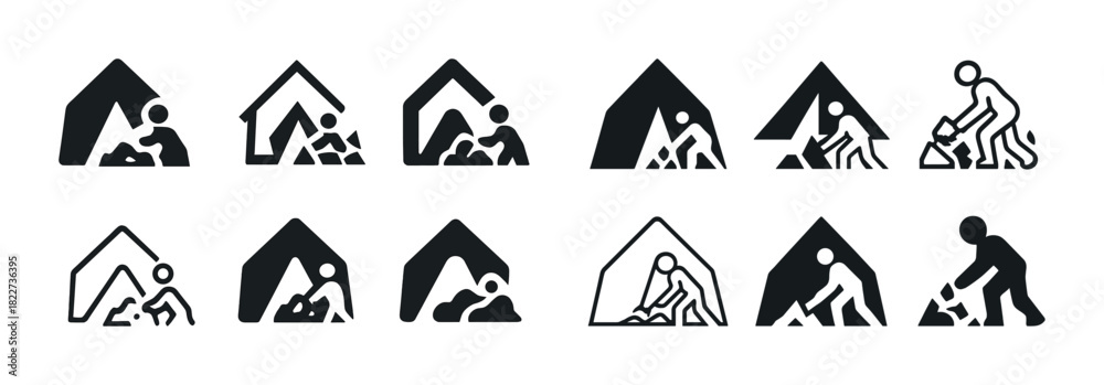 Obraz na płótnie Canvas - Icon set of people and pets in various shelter designs.