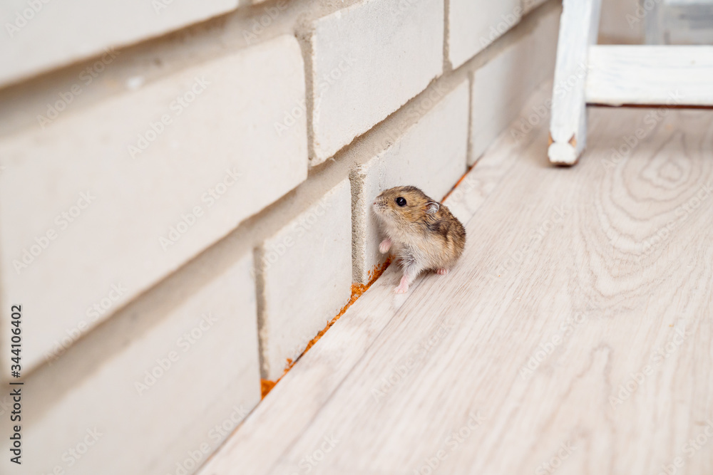 Obraz na płótnie Canvas - mice or hamsters run all over floor in house..
