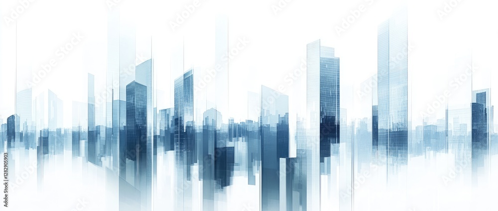 Obraz na płótnie Canvas - Abstract Cityscape Skyline, Modern Buildings, White Background, Futuristic Design, Website Banner.