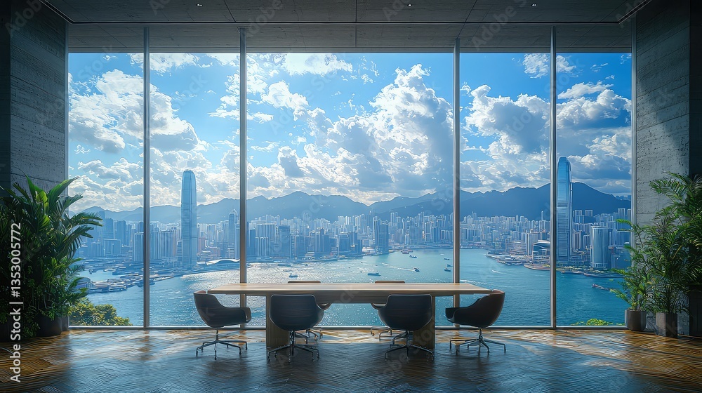 Obraz na płótnie Canvas - Hong Kong city view from modern office meeting room.