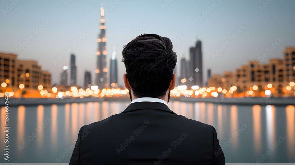 Obraz na płótnie Canvas - Businessman Contemplating City Lights at Night.
