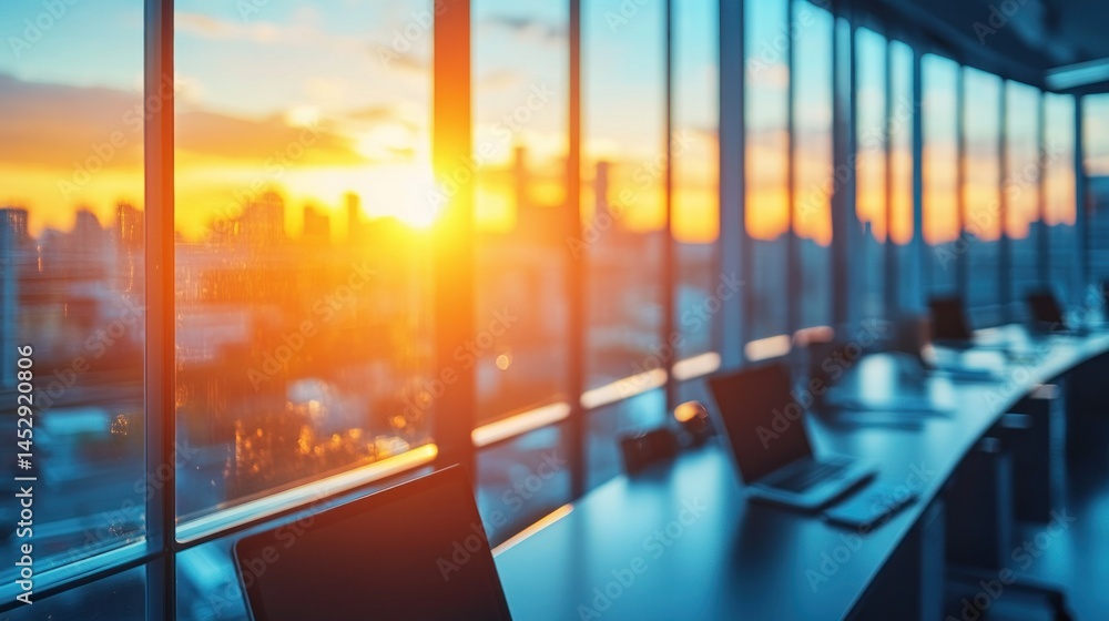 Obraz na płótnie Canvas - Modern office at sunset, city view.