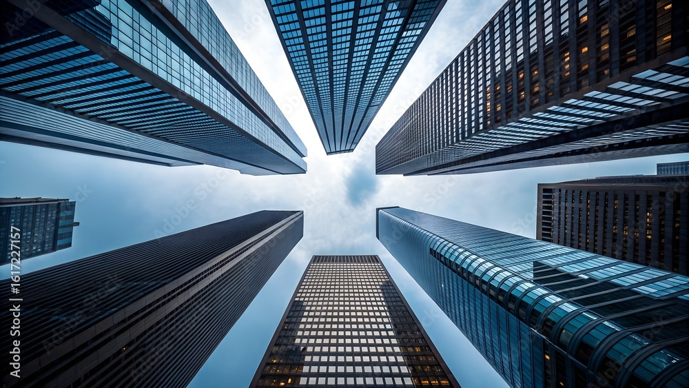 Obraz na płótnie Canvas - Modern skyscrapers reaching for the sky, urban business district architectural view.