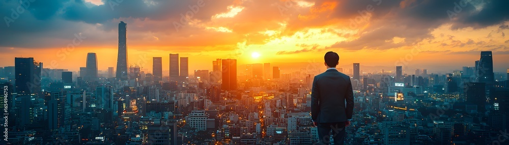 Obraz na płótnie Canvas - Panoramic view of a bustling city at sunset offering diverse business opportunities.