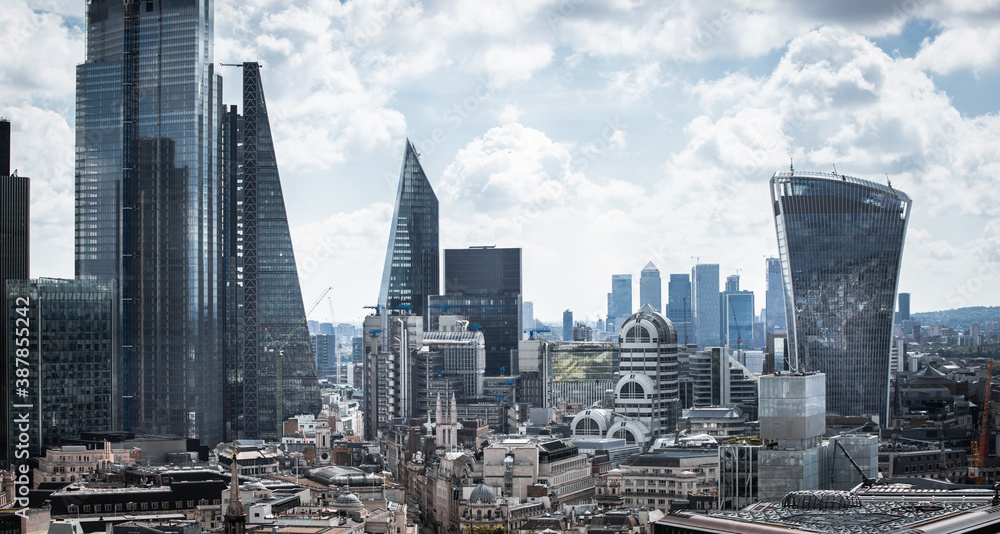 Obraz na płótnie Canvas - City of London view, business and office area, with skyscrapers, banks and international companies. London UK, 2020.