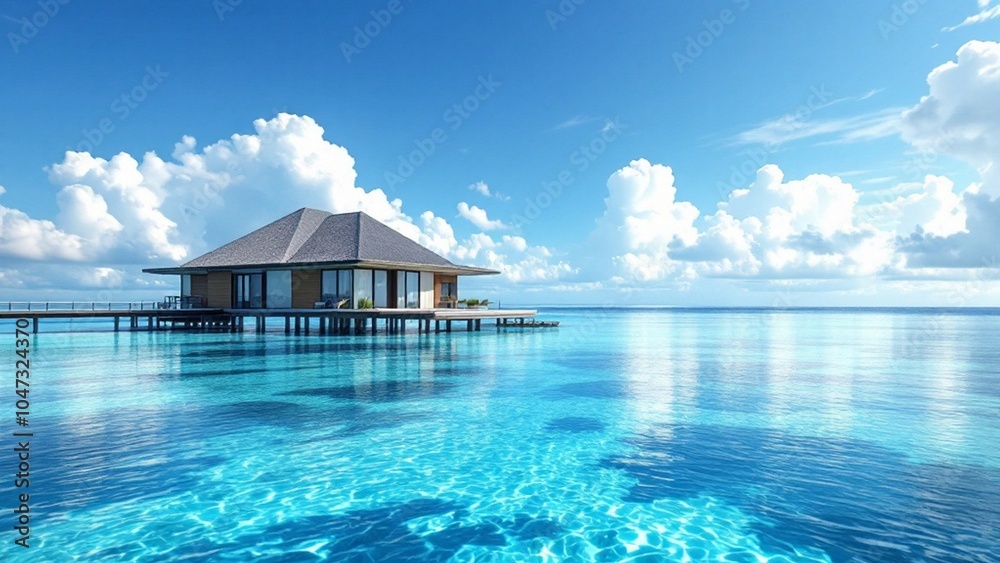 Obraz na płótnie Canvas - beautiful water villa in maldives island with blue lagoon and sky sea view ocean background.