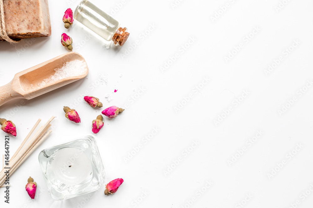 Obraz na płótnie Canvas - spa composition for body care on white background top view mock up.