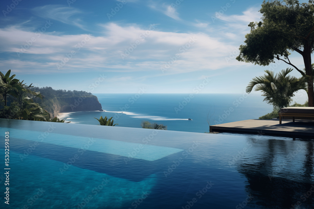 Obraz na płótnie Canvas - Swimming pool with a beautiful view of the sea and sky..