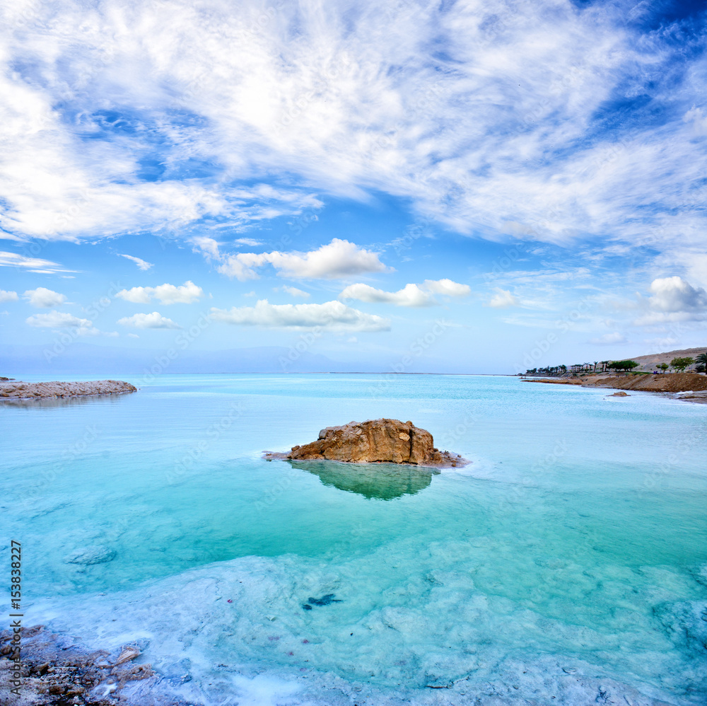 Obraz na płótnie Canvas - View of Dead Sea coastline at sunset, Israel.