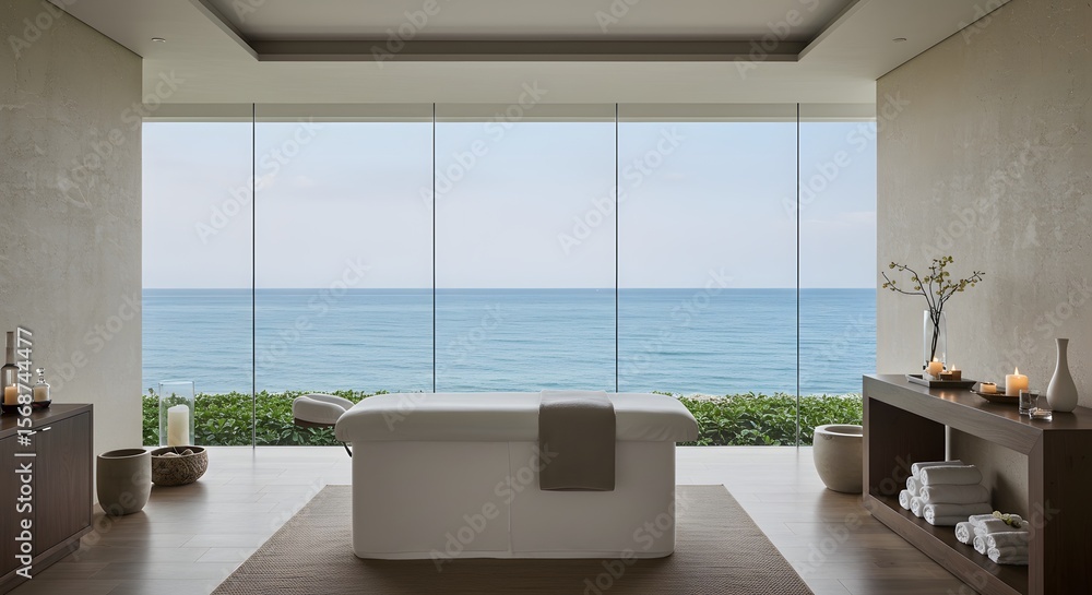 Obraz na płótnie Canvas - Private spa interior of a luxury resort with ocean view.
