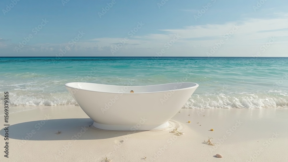 Obraz na płótnie Canvas - A luxurious bathtub positioned to overlook the vast ocean offers a serene and relaxing atmosphere, blending comfort with the breathtaking beauty of the sea view. .