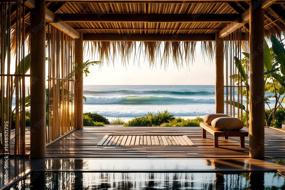 Obraz na płótnie Canvas - Tropical Ocean View Resort Relaxation and Serenity at Dawn.