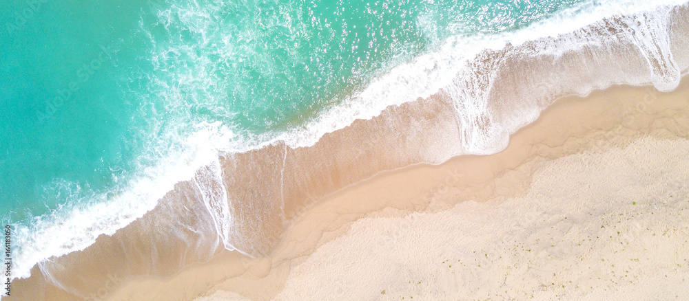 Obraz na płótnie Canvas - Aerial view of sandy beach and ocean with waves.