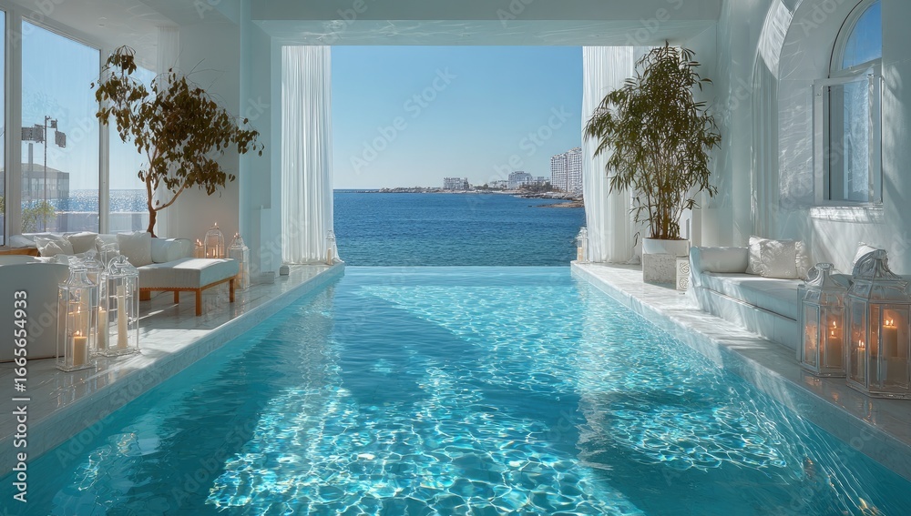 Obraz na płótnie Canvas - Luxurious indoor pool overlooking the sea.