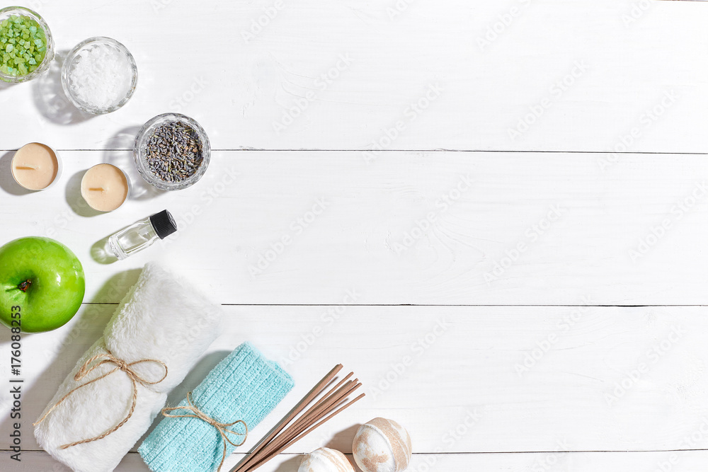 Obraz na płótnie Canvas - Bathroom or spa set on white background top view mock-up.