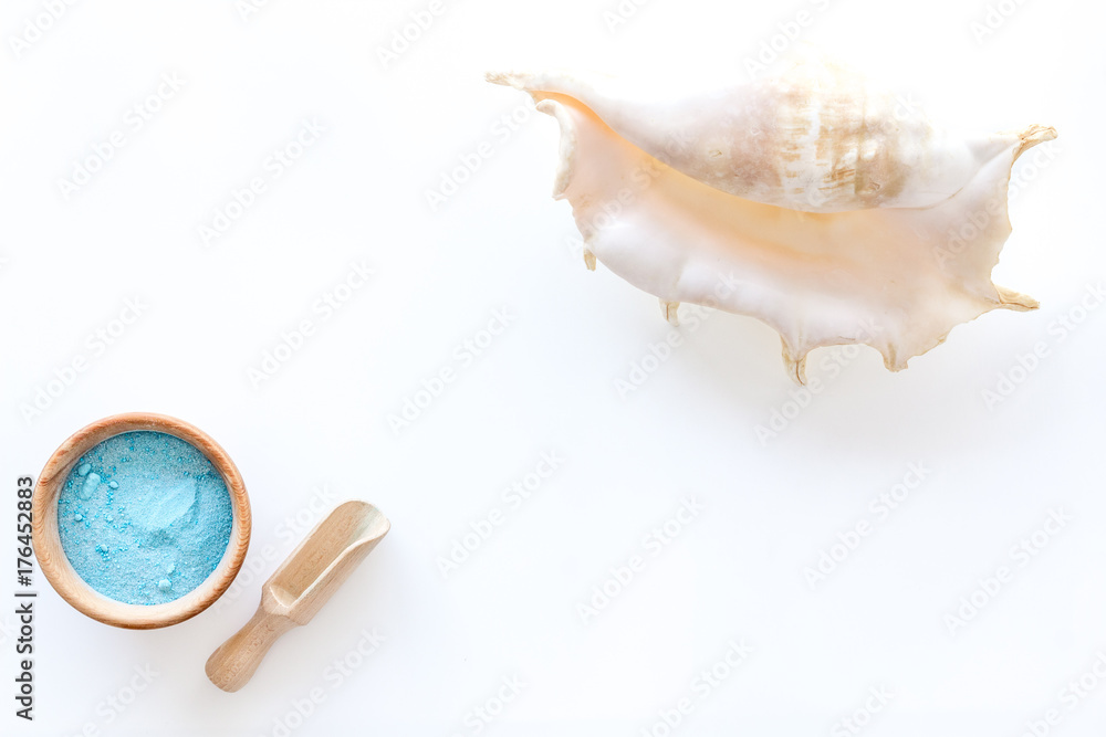 Obraz na płótnie Canvas - Sea cosmetics and shell from dead sea for homemade spa white background top view mock up.