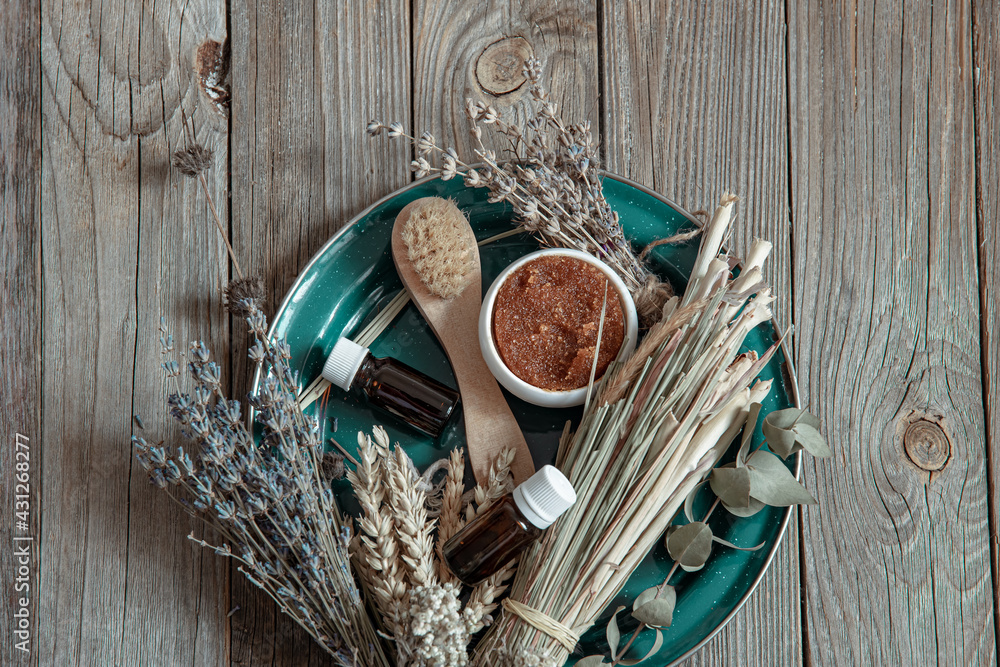 Obraz na płótnie Canvas - Spa composition with natural bath products in a rustic style..