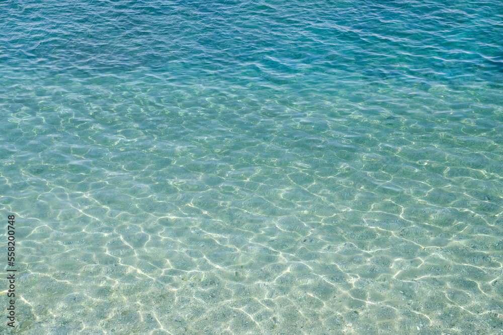 Obraz na płótnie Canvas - Background of water surface, sun's rays shimmer on water surface, top view.