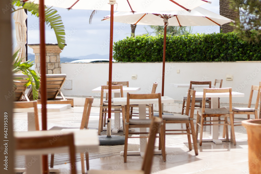 Obraz na płótnie Canvas - Interior view of dining hall of restaurant at beach resort and spa in Spain.