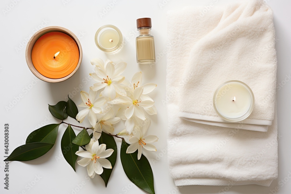 Obraz na płótnie Canvas - A spa-themed arrangement featuring sea salt, fragrant orange blossoms.