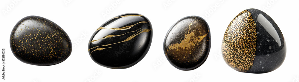 Obraz na płótnie Canvas - Black sea pebbles isolated on white background. Top view.