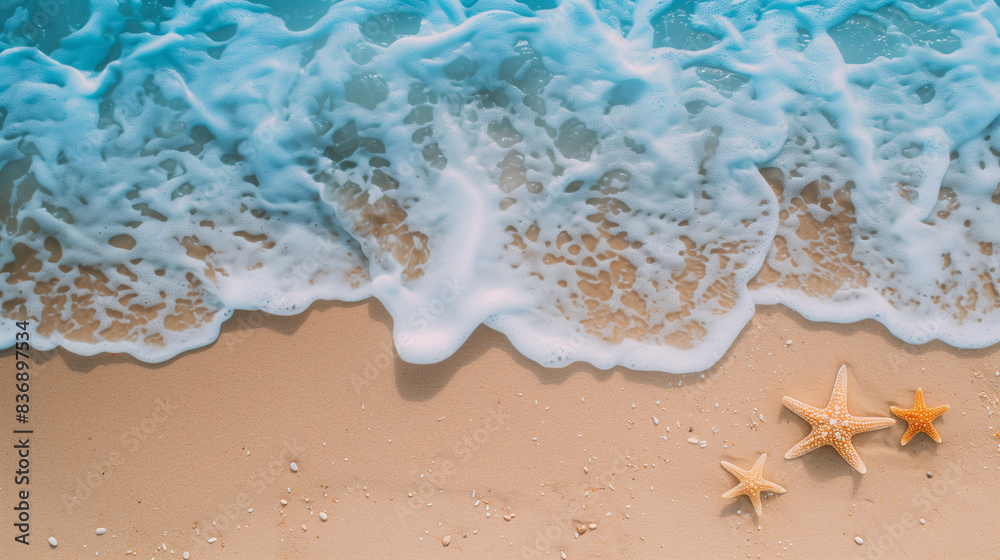 Obraz na płótnie Canvas - Top view of Summer tropical seascape beach nature background with beautiful waves and star fish.