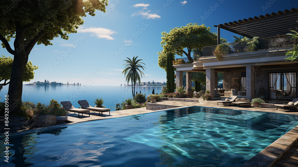 Obraz na płótnie Canvas - Swimming pool in luxury villa with sea view.