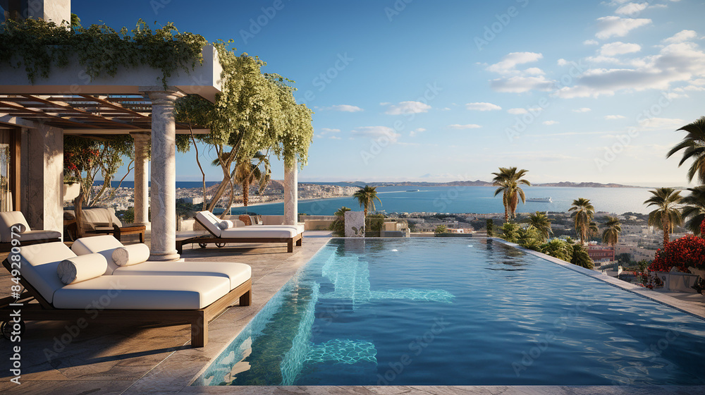 Obraz na płótnie Canvas - Swimming pool in luxury villa with sea view.