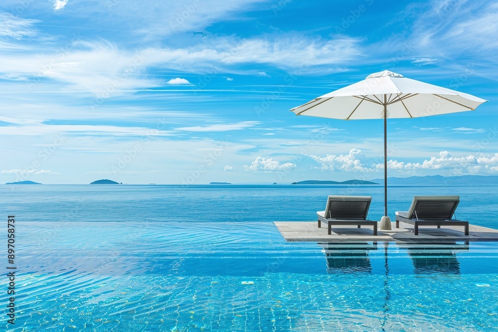 Obraz na płótnie Canvas - Beautiful luxury swimming pool on sea view and umbrella.
